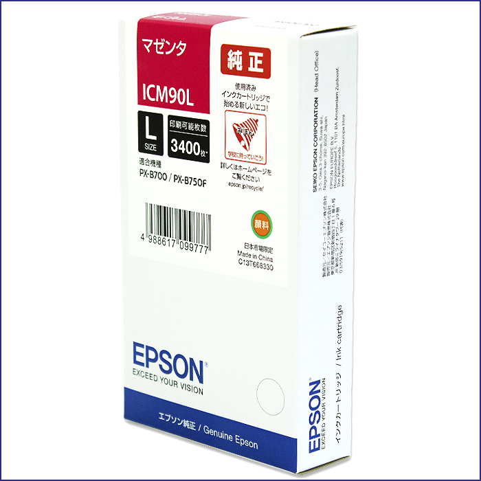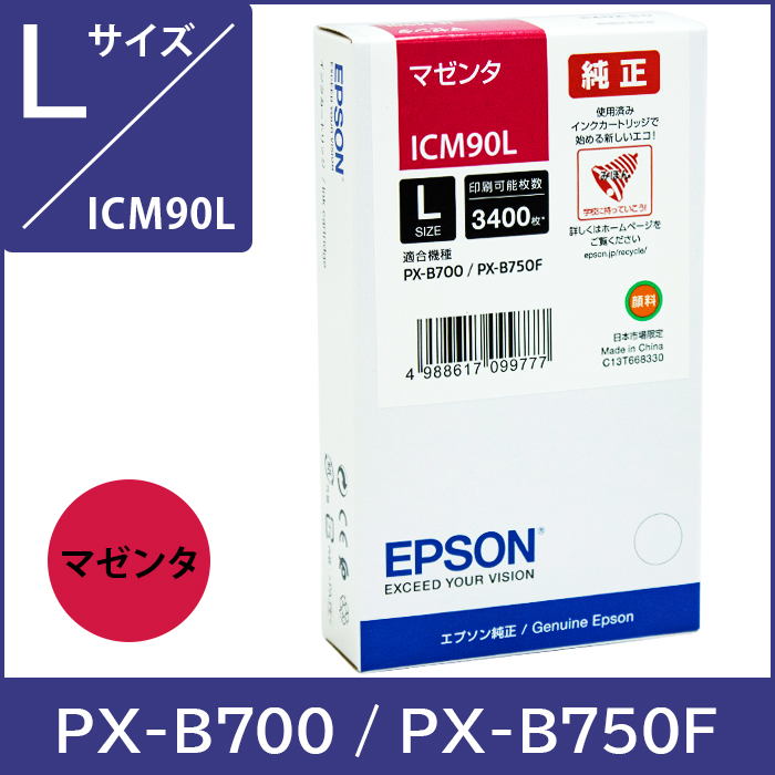 【エプソン】純正インク 消耗品 > ICM90L エプソン EPSON 純正インク Lサイズ【マゼンダ】 対応機種:PX-B700 PX-B750F