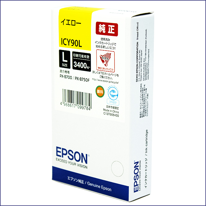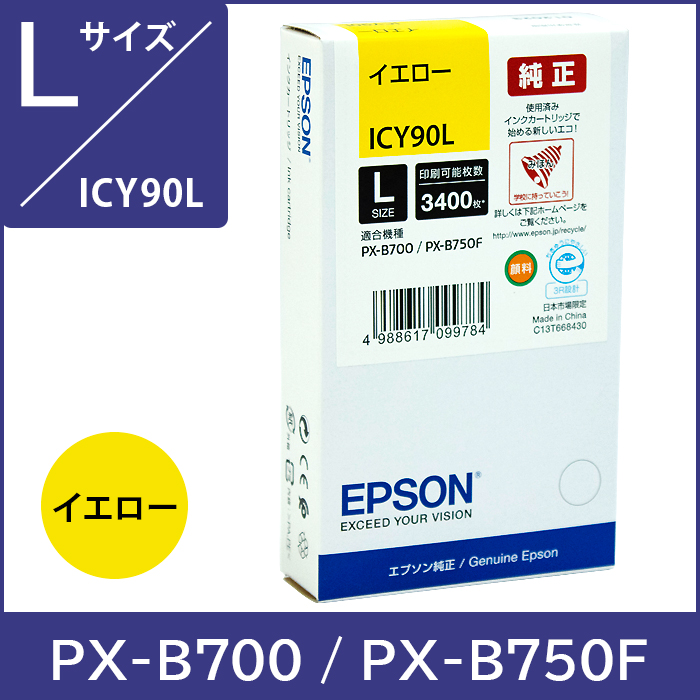 【エプソン】純正インク 消耗品 > ICY90L エプソン EPSON 純正インク Lサイズ【イエロー】 対応機種:PX-B700 PX-B750F