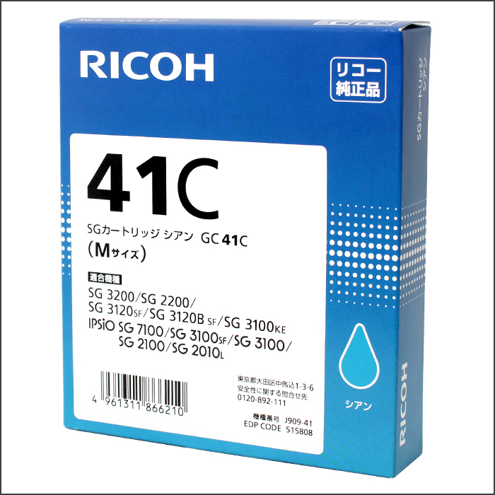 GC41C リコー純正インク Mサイズ【シアン】 対応機種:SG2100 SG3100 SG2200 SG3200 SG7100 SG7200 SG3120SF
