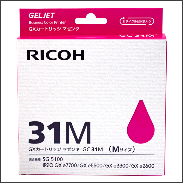 GC31M リコー純正インク Mサイズ【マゼンタ】 対応機種:GXe7700 GXe5500 GXe3300 GXe2600 SG5100