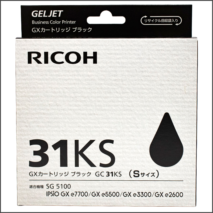 【リコー】純正インク 消耗品 > GC31KS リコー純正インク Sサイズ【ブラック】 対応機種:GXe7700 GXe5500 GXe3300 GXe2600 SG5100